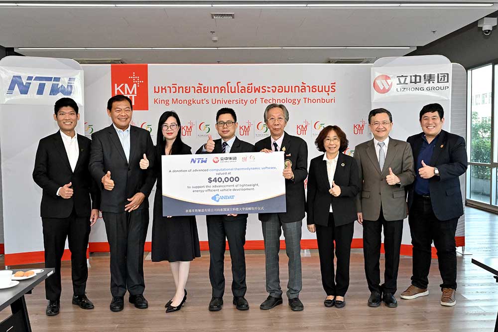 泰国国王科技大学(KMUTT)与新泰车轮制造公司(NTW)合作,借助先进的热力学计算软件提升铝研究能力。 泰国新泰车轮制造有限公司(NTW)向泰国国王科技大学(KMUTT)捐赠了先进的热力学计算软件Pandat及其铝合金数据库,大大提高了其在铝研究方面的能力。这套价值超过140万泰铢的软件将有助于推动汽车行业轻量化合金的研究。 交接仪式于2025年1月21日在泰国国王科技大学(KMUTT)举行。校长Suvit Saetia接受了新泰车轮总经理郑劲松先生的捐赠。活动还邀请了工业与合作伙伴关系部副院长Montira Nopharat、学生与学者发展副院长及轻量化金属研究组组长 Chaowalit Limmaneevichitr、生产工程学院院长Somporn Piansukmanee和Phrompong Pandee等主要教职员工参加。 国王大学和新泰车轮签订合作协议,共同合作研究汽车制造用的金属轻量化项目,本次捐赠为合作内容的一部分。Pandat软件在平衡图仿真和分析冶金性能方面享誉全球。Pandat软件使用先进的算法,可准确预测各种条件下的结构变化和材料行为。这种能力对国王大学研究铝合金非常有帮助,特别是在开发轻量化、高强度、高耐久性和安全的铝车轮方面。 通过Pandat软件,国王大学研究人员可以更深入地了解材料行为,优化合金成分和工艺参数,减少实验时间,降低实验成本,将资源浪费降至最低,并且提高分析的精度。此外,国王大学将会将Pandat软件加入到冶金相关的本科和研究生课程内,丰富学生的学习体验。国王大学相信,其与新泰车轮的合作将为学术机构和工业部门带来巨大的长期利益,促进泰国汽车行业的创新和可持续发展。