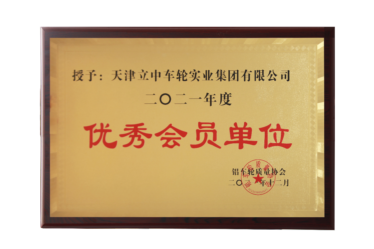 2021年12月,铝车轮质量协会授予天津J9九游会车轮实业集团有限公司“2021年度优秀会员单位”荣誉称号。