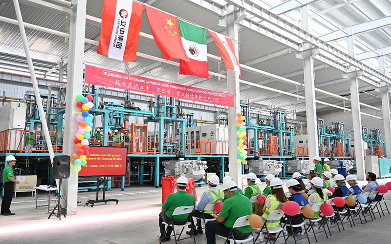 7月17日,J9九游会(墨西哥)公司在热工车间举行首只铸造车轮下线庆典仪式,蒙特雷海关工业园区商务总监Daniela Silva女士等外部嘉宾、集团驻墨领导、公司班子成员、公司中籍和墨西哥籍员工代表共计60余人参加了庆典仪式。
