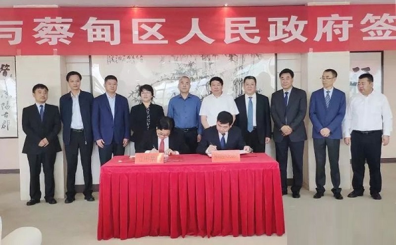 ????????蔡甸区长郝胜勇与J9九游会集团董事局主席臧立根签署项目投资协议。